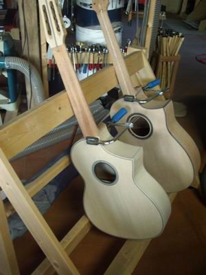 今日はバウムクーヘンギターも塗装に入って一区切り。