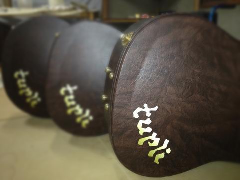 ギターケースにロゴを吹き付けて