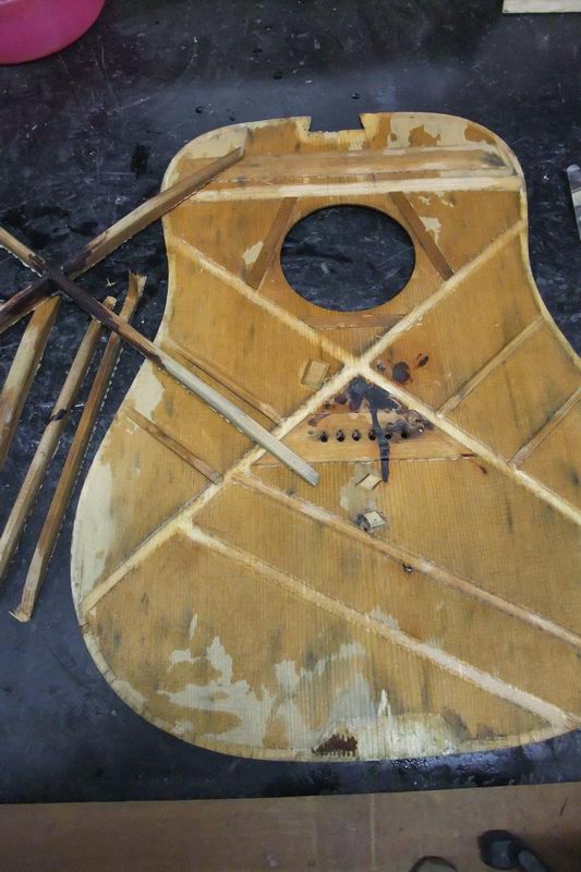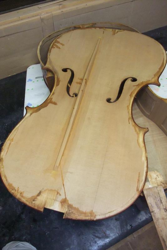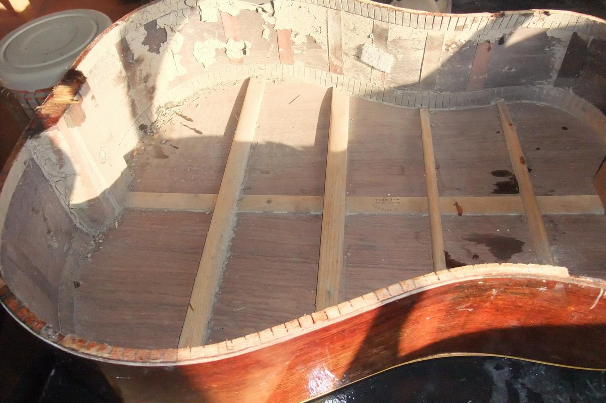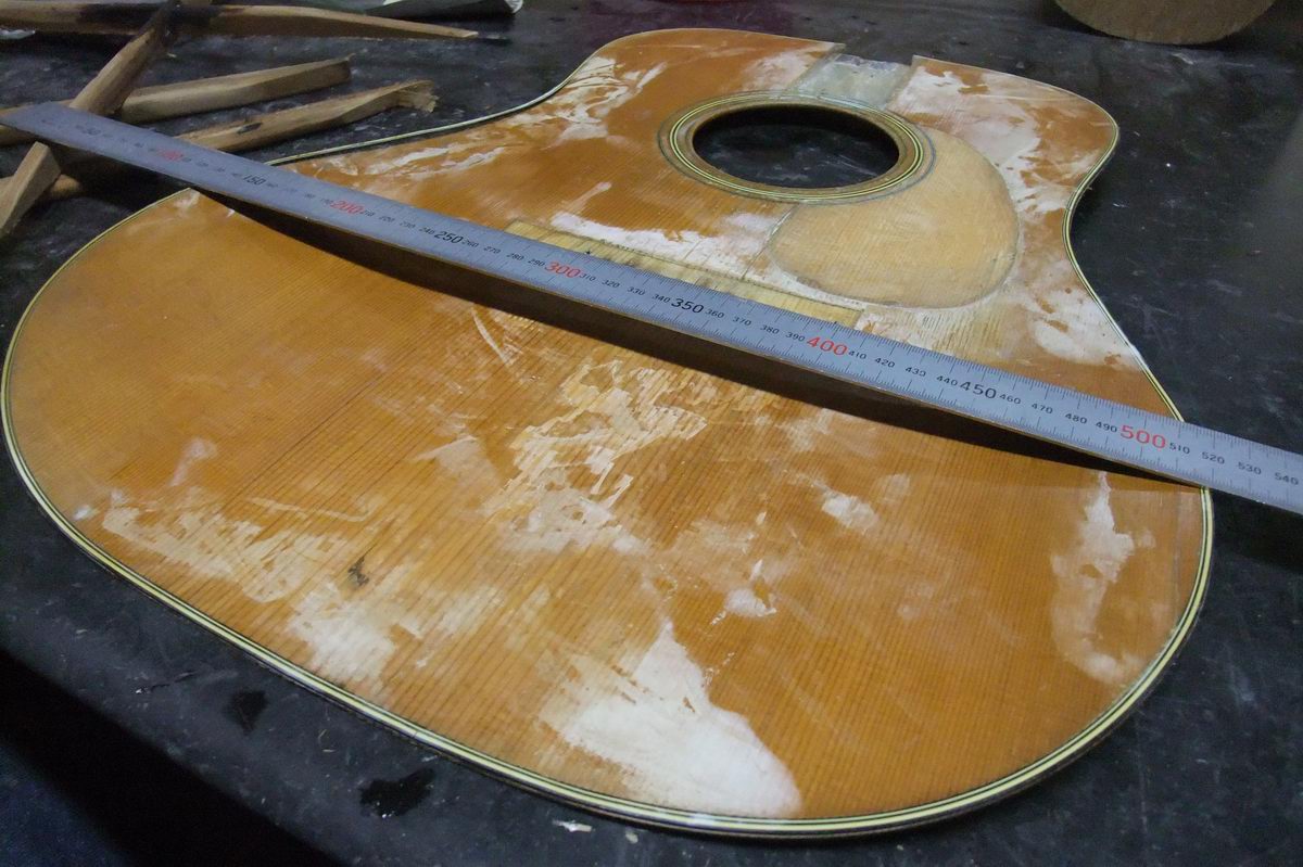 さて、このギターの表板は洗ったのち、概ね乾き始めているのだが