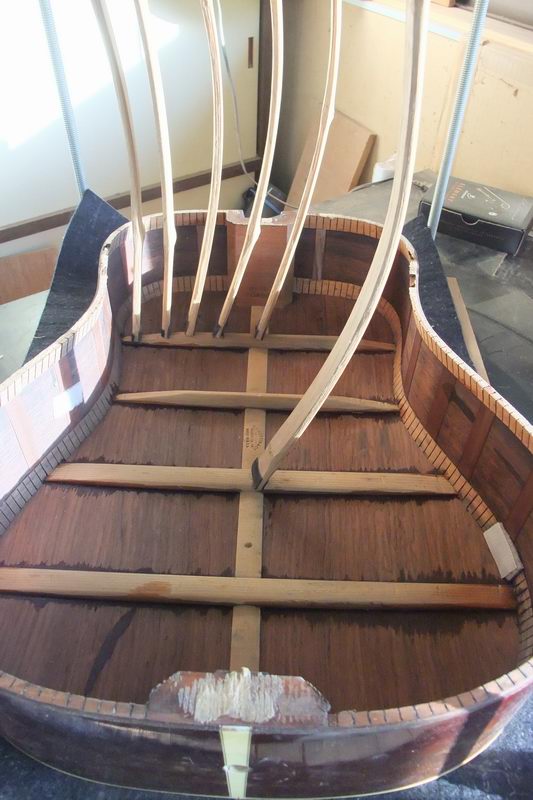 はがれかけの力木4本を8度に分けて強制接着。