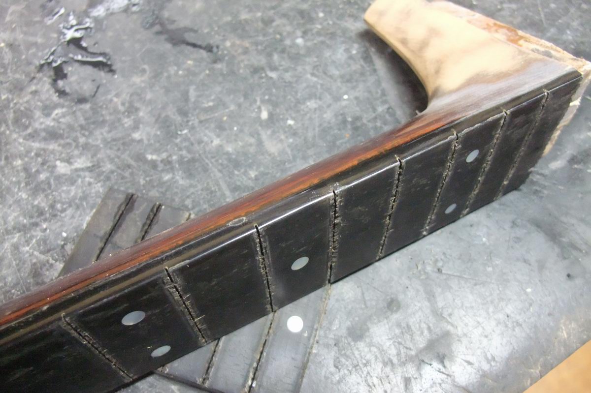 フレットをはずす際、裏技として少し熱を使うんだけど
