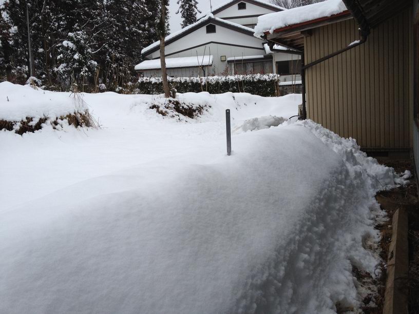 ただ、家の北側、先日の融け残りと屋根からドカドカ落ちる雪も合わせて今朝の時点で70cm。