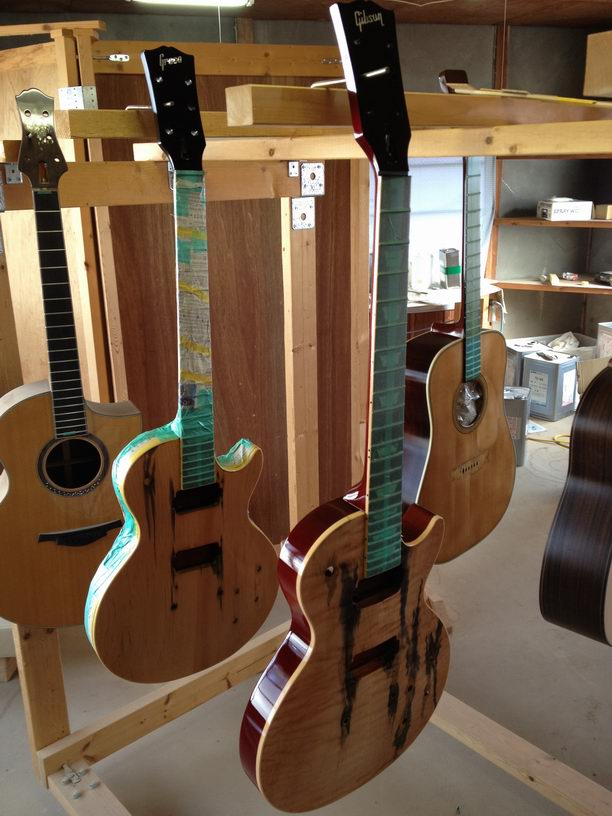 レスポールも塗装。僕にとっては最近塗装スランプなので(認めたくないものだが)一応カラー保護の塗装をもう一度。