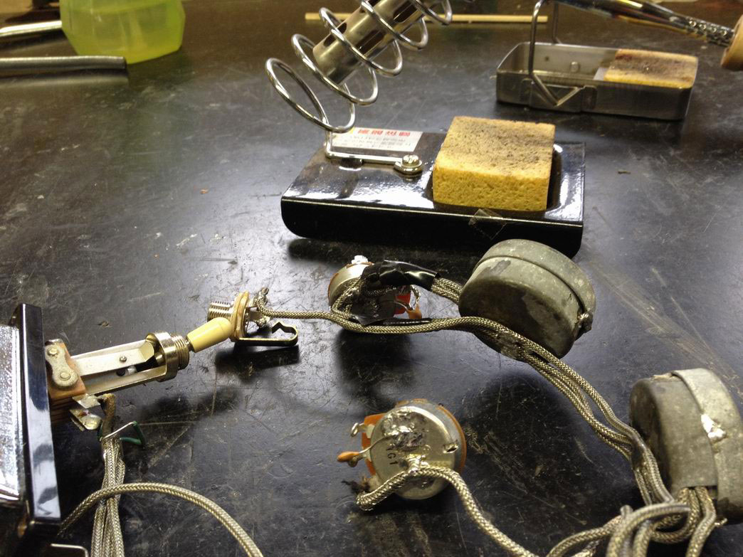 線材は基本的にそのままでポット、コンデンサ、ジャックを交換。