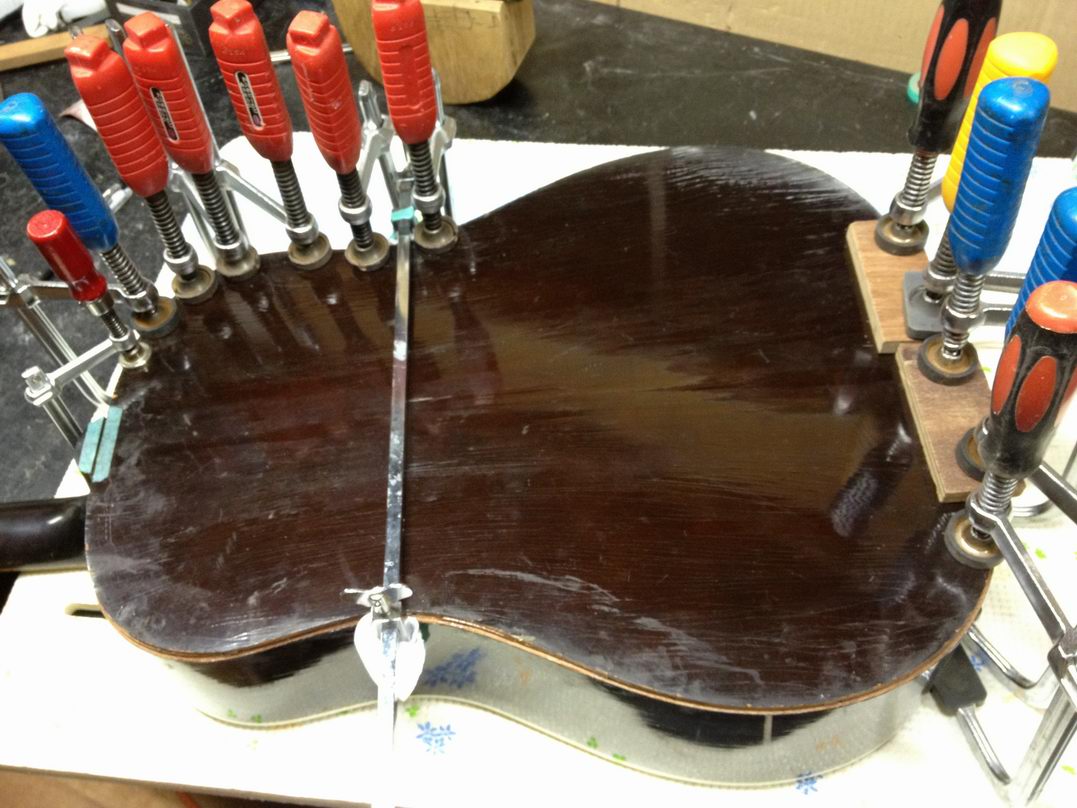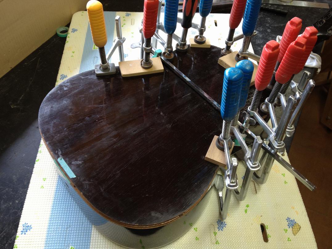 震災J-45の裏板接着。