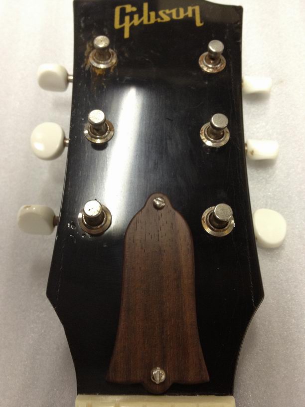 ブリッジや指板周りに貼ってあったマスキングテープの跡が塗面についていた。
