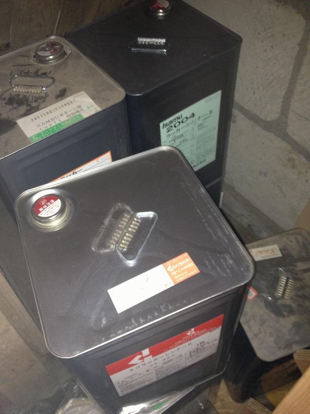 ラッカーシンナーと洗浄用シンナー(アセトンがわり)合わせて32リットル。