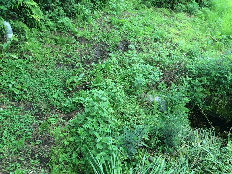 度重なる大雨による我が家の被害は駐車場にぬける、ため池前の通路、地滑りを起こして道幅が狭くなり傾斜もきつくなった。これは対策が必要そう。