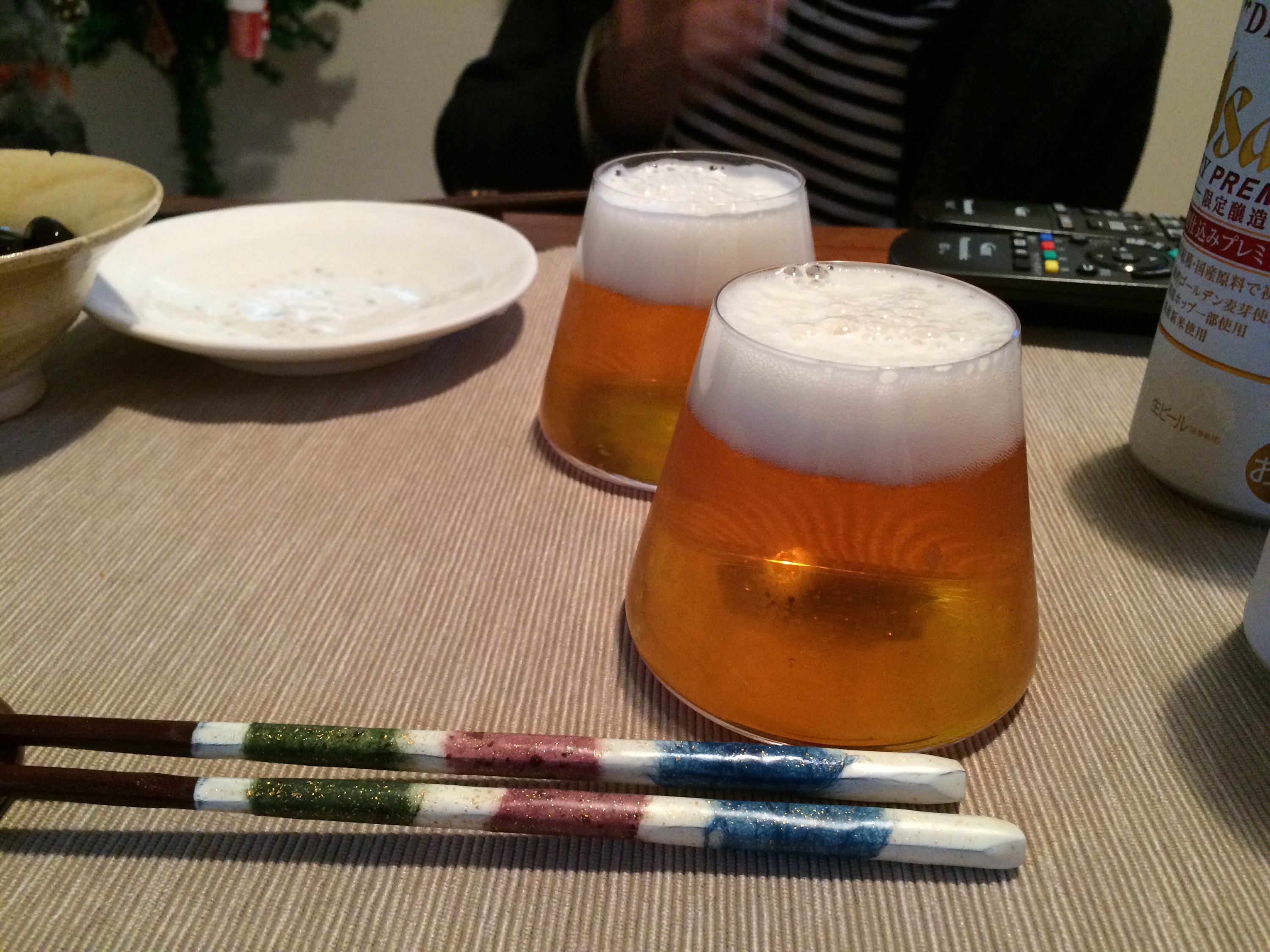 正月らしく 2015年1月4日 tupli コメントする 世田谷の友人宅へお邪魔して呑んで一泊。昨日も東久留米の友人宅にみんなで押しかけたけど、どこもきれいでいいところね。富士山グラスのビールで始まって焼酎ご馳走になってそろそろダウンします。