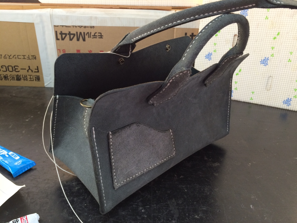 この乾燥の待ち時間で頼まれものの革細工。これ、アンコールなんよね。前回どうやったか覚えてない。まぁだいたいで。2日で仕上げるのだ。