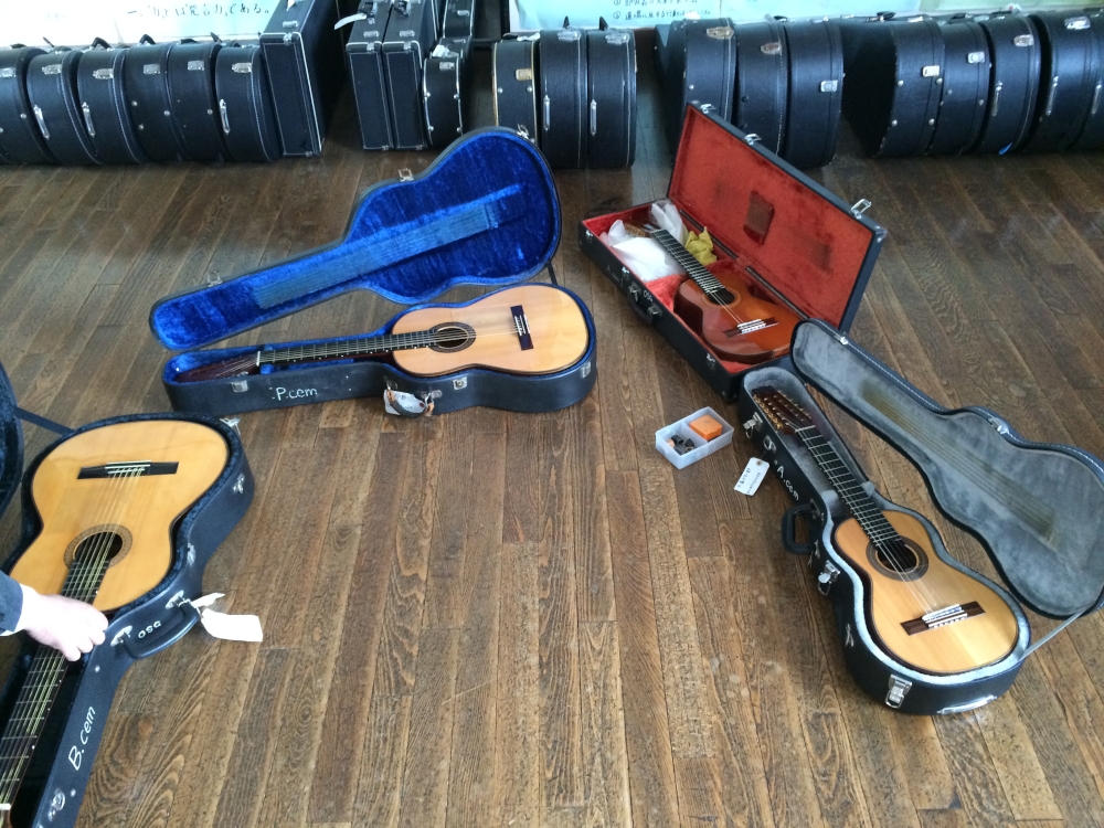 大河原商業高校といえばギター部。クラシックギターアンサンブル。全国大会で何度も1位を取っており、常に上位にいる強豪校。縁あって今日、顧問の先生と会ってギター部の部室を見せてもらうことができた。個人の練習用ギター、代々受け継いでいる本番用ギター、楽器の数がすごい。ギター、アルトギター、バスギター、ギタロンくらいは想像していたけど、知らない楽器も多数。これらなんて鉄弦。針ではじくからチェンバロギターって言うんだそうだ。