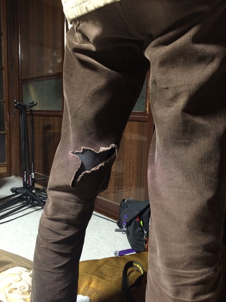 昨日、4年前の余震として大きいのがあったことを受けて、仕事中もし突然避難しなきゃいけなくなったりしたら、こんな恰好で飛び出したくないなぁと思って、作業着にしていた破れたラングラーのコーデュロイを捨てる決意をした。ストーブでしばしばズボンに穴あけてしまうのよね。
