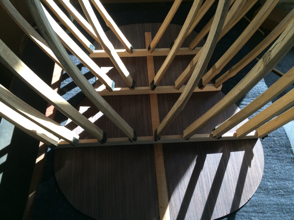 力木貼って、サイドに割れ止め貼って、力木削って、裏板接着。