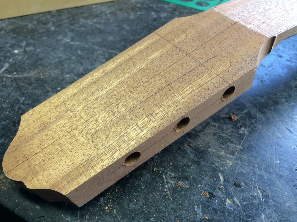 同時に、というか合間合間にヘッドを作る。糸ぐらよりペグ穴を先にあけるのだよ。教えちゃった。考えたらわかることか。