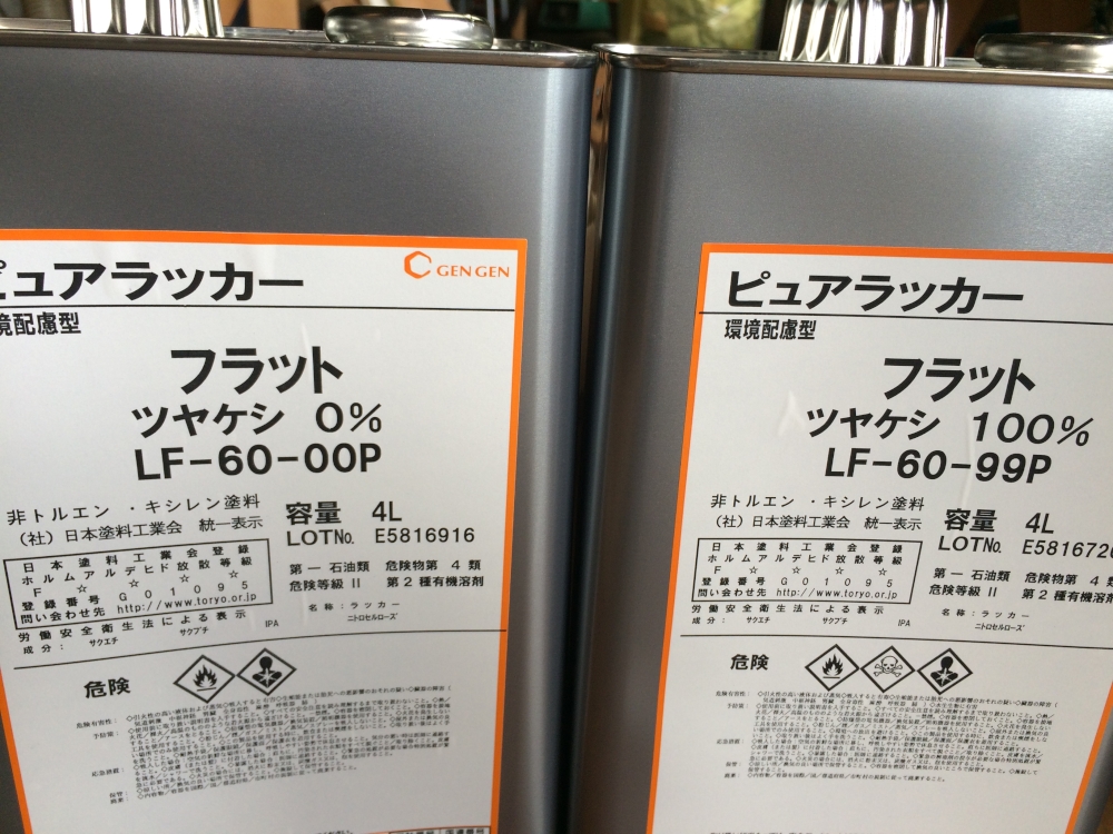 艶消し塗料って普通のクリアーと混ぜて艶消し具合を調整できると思ってたんだけど(まぁできるんだろうけど)、塗料メーカーに聞いてみたら艶消し塗料どうしで混ぜて調整してほしいとな。そんなわけでお試しに2缶。0%は普通のクリアーよりは光らないんだとか。