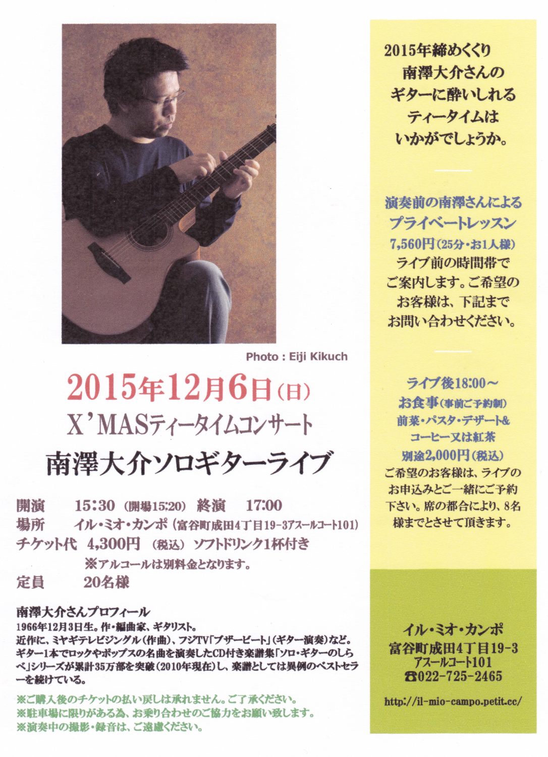 知り合いから南澤大介さんのライブ情報が届きました。