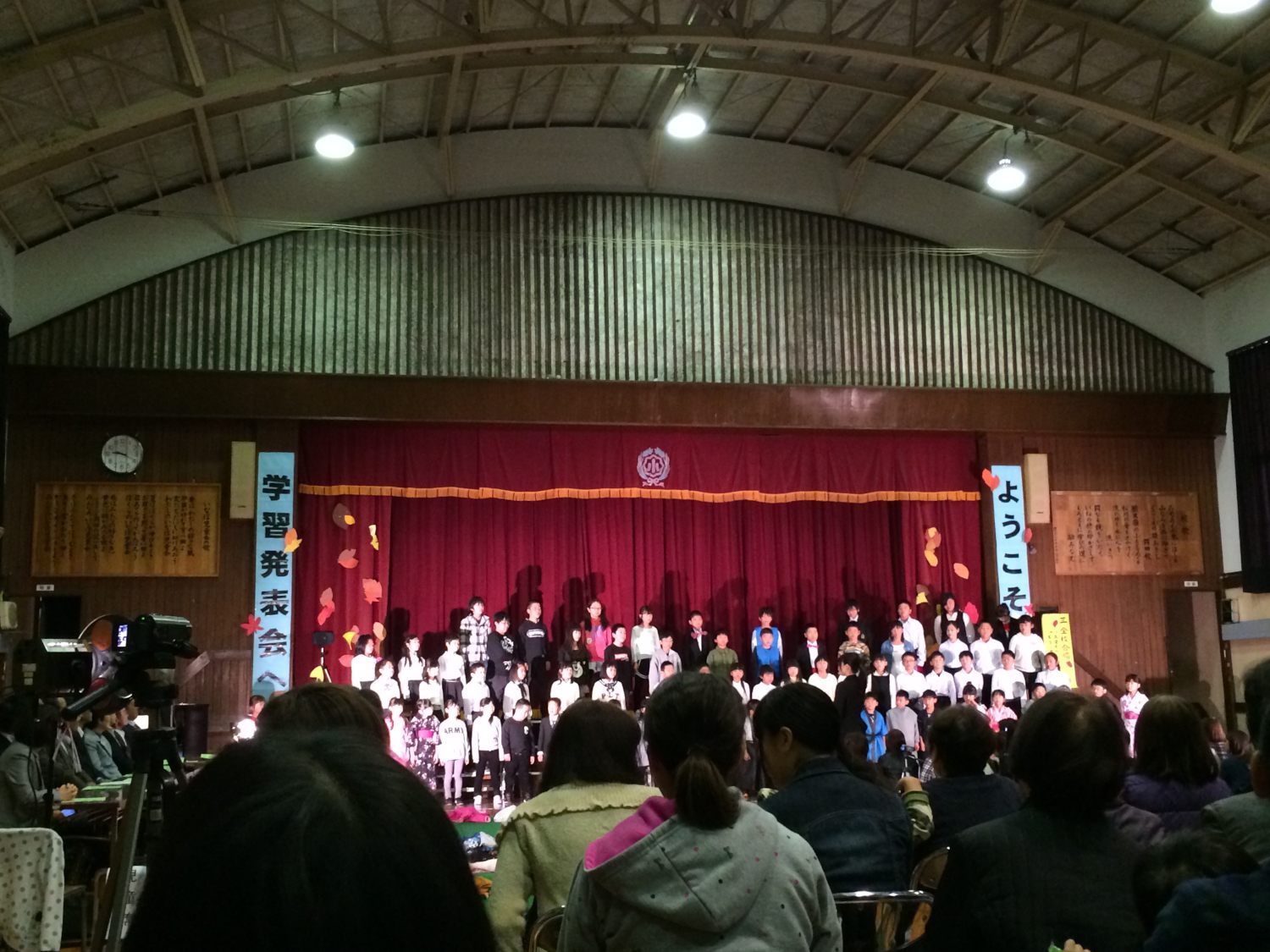 今朝は小学校の学習発表会に呼ばれてちょっとだけ見学。いつもは聞かずのやんちゃ坊主も真面目に一生懸命だった。生徒が少ないというのもこうして劇をするにあたってこのくらいならかえってちょうどいいのかもしれない。ごめんだけど途中で抜け出してきた。写真は全校生徒での合唱。