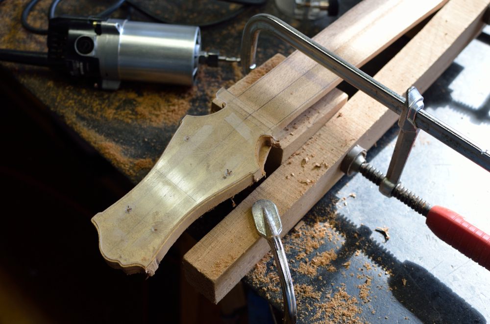 今日は小学校のお仕事が休みで、通常業務と大差ない作業内容なのでネック加工をスタタタンッと進めていく。夜まで仕事できないし、テンポが大事。