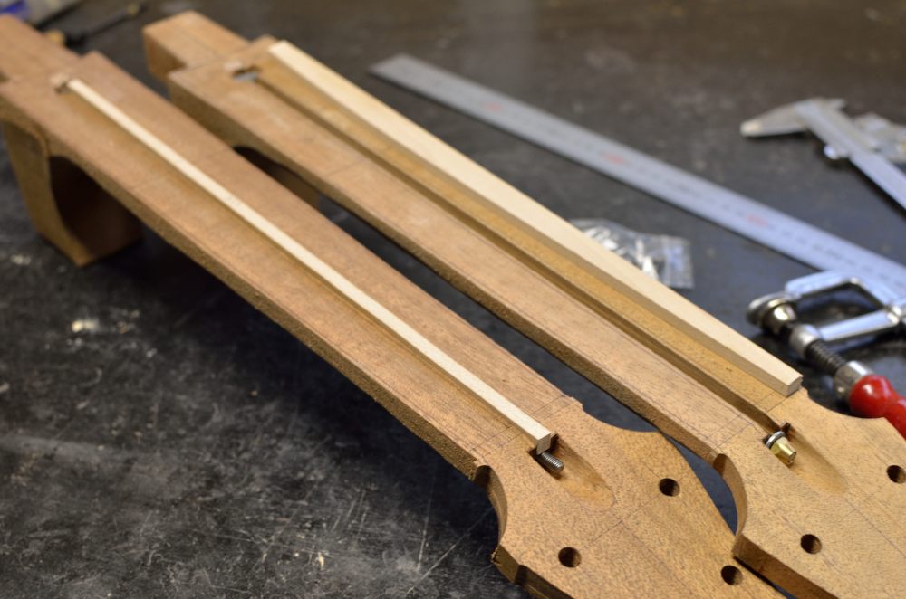 ヘッド裏を鉋でならして厚みを決めて、ペグ穴あけて、ロッド溝掘ってロッドポケットも掘って、ロッド切って埋め木作って、ロッド仕込む。お風呂の時間に間に合った。