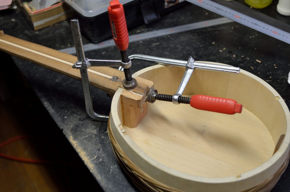 桶の棹付け第二弾。非常に苦労した。このジョイントはもうたくさんだ。