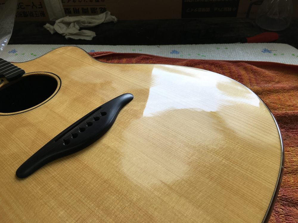 さて、秋から(?)町の生涯学習課だか文化会館だかでギター講座始めるとかで、その時にギター持っていない人でも参加できるように何か貸し出せるギターってないかと相談を受けて、長いこと放置されているギターのリペアを始めてみようかと引っ張り出してきた。仕事の合間の仕事。