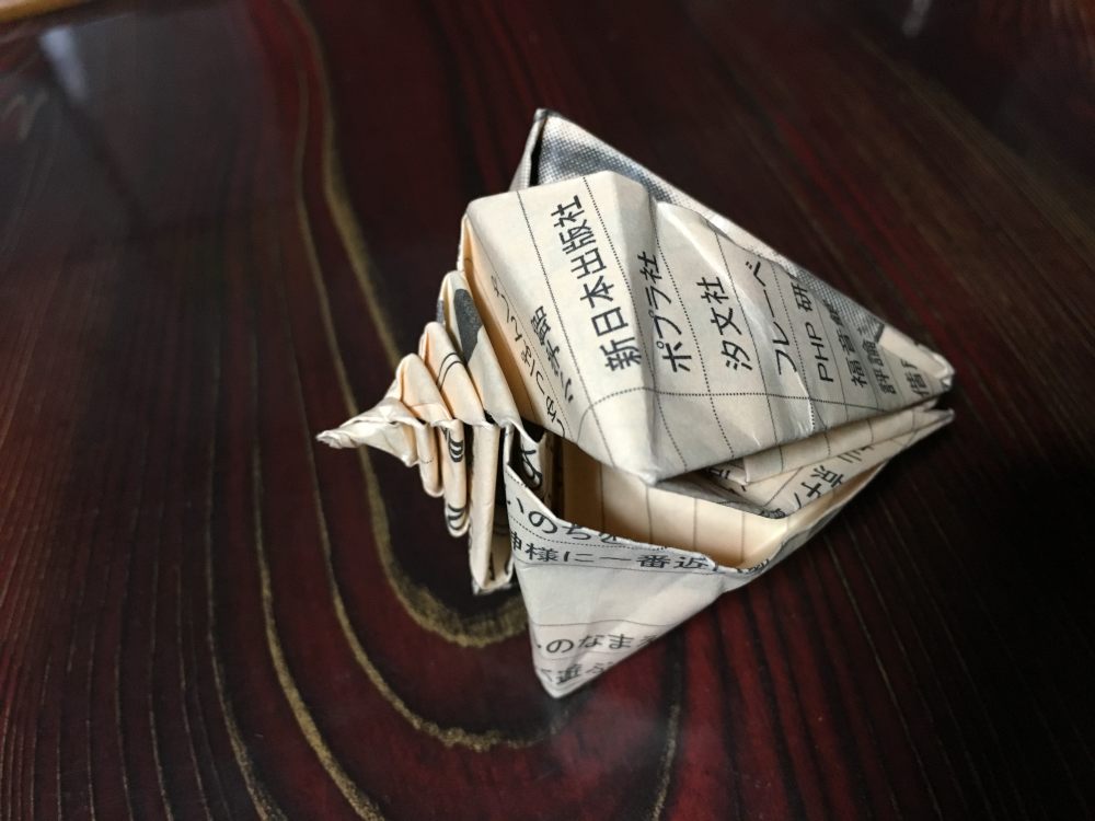 今日で39歳になった。抗いようのないアラフォーなわけだがどうにも信じられない。未だに30そこそこの気分でいる。ただ、腰回りに肉が付いてきたのもまぎれもない事実。誕生日に折り紙の本をもらったので、さっそく遊んでみている。簡単そうなところから。巻貝とネズミ。こういうの考える人の頭ってどうなっているんだろう。天才だわ。