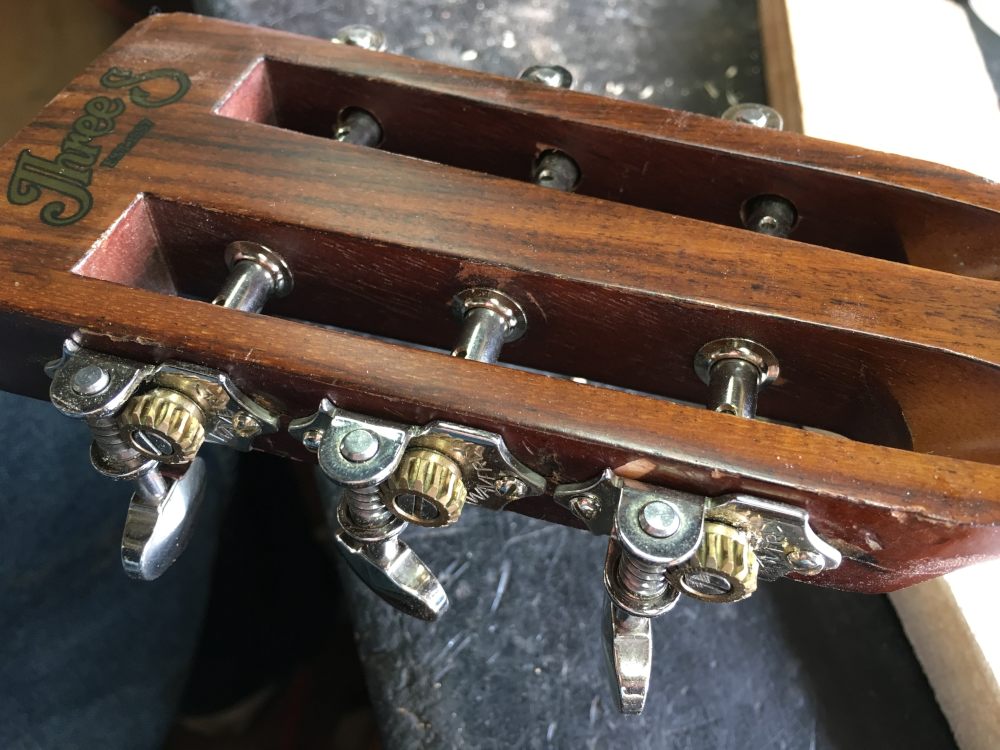 ペグを留めるネジが利かなくなったと持ち込まれたギター。小さなビスはちょっと力任せに締めただけで木もつぶれちゃうしネジ山もなめやすくなって利かなくなるから注意が必要。でもこれ、原因はそうじゃなかった。