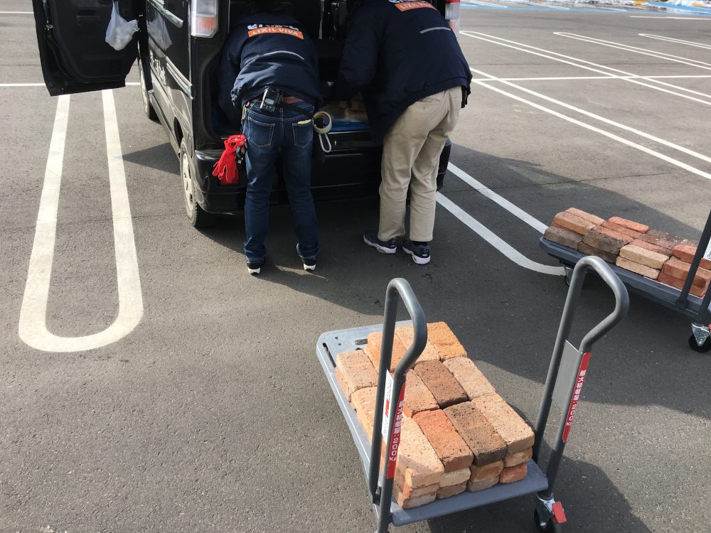 畑の庭化の準備のために片道50分のホームセンターへレンガを調達に来た。1トントラックを1時間無料で貸し出してくれるそうだが、2時間かかる場合は貸してくれないのだそうだ。レンガ300個購入。重たいので3回に分けた方がいいと店員さんからアドバイスを受けて、まず100個を運ぶことにした。積み込みまでお店の人がやってくれちゃった。