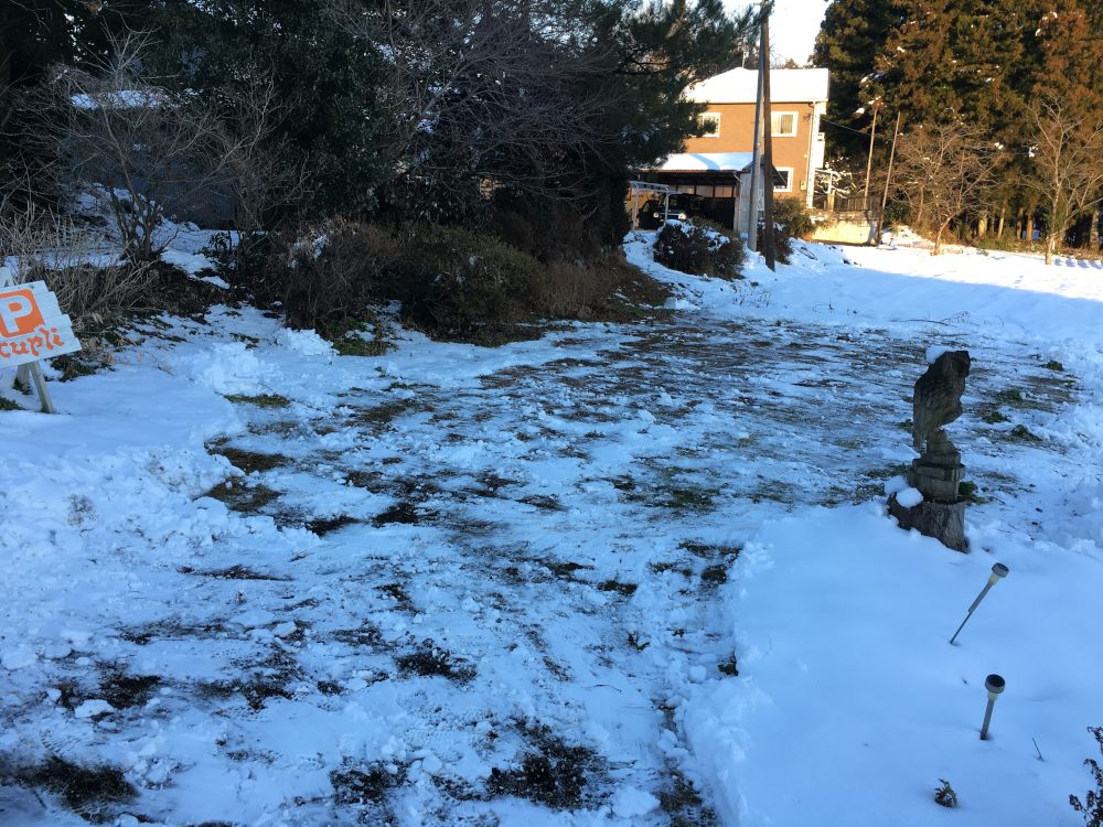 300運び終えて雪が降りだした。せっかく雪かきをして園芸用の棒でなんとなくのレイアウトも決めてってところまでやったのに。レジのおばちゃんが300個って数字を2回聞き返して驚いていたけれど、こうしてみると全然大した量じゃないと分かってくれると思う。300なんて節約しないとすぐ足りなくなるぞ。