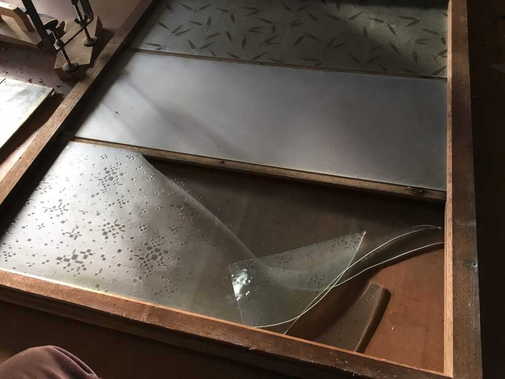 3枚とも飾りガラスにするのはあきらめた。それでも笹の柄は作業場に移植できたのでもういいや。