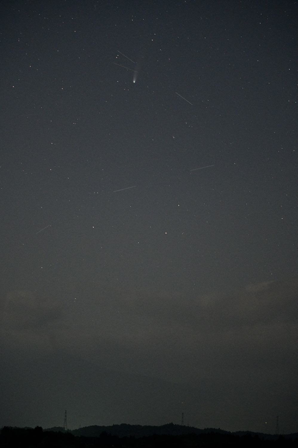天気の良かった朝方3時半、話題のレモン彗星が写らないものかとそれらしい方角にカメラを向けてみた。全然ダメだ。尾が無いとどれが彗星かなんてわからない。写ってないのかも。それでもたった3秒の露光で流れ星が3つ撮れた。