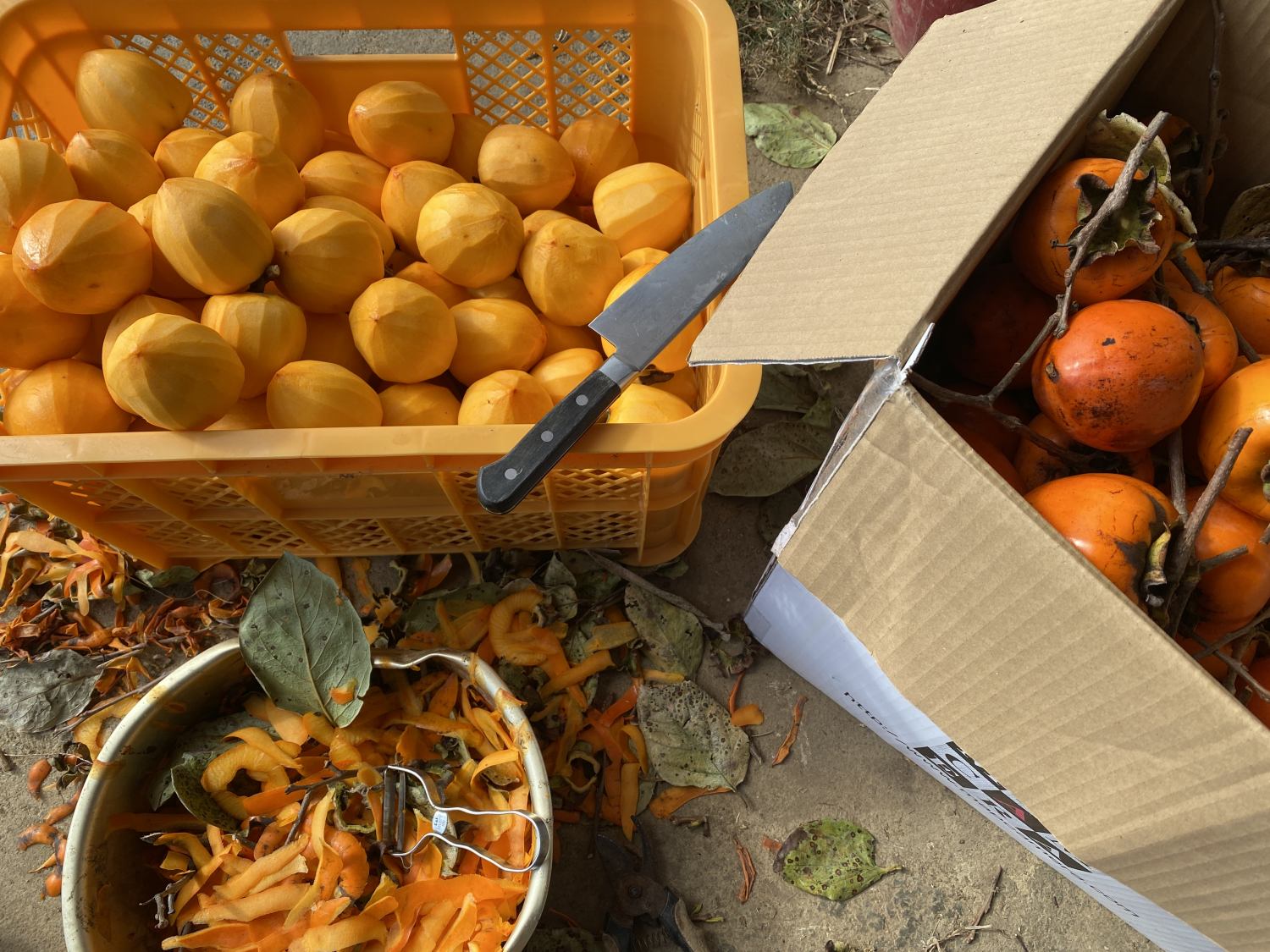 今年は例年に比べ結構小ぶり。だがその数は断トツ最多。ついたくさん採ってしまった。作業量ハンパない。外作業とても寒い。明日には終わるだろうか。産直行ったら干し柿用の柿が売られていてその値段に驚いた。これ何万円分あるんだろう・・・?
