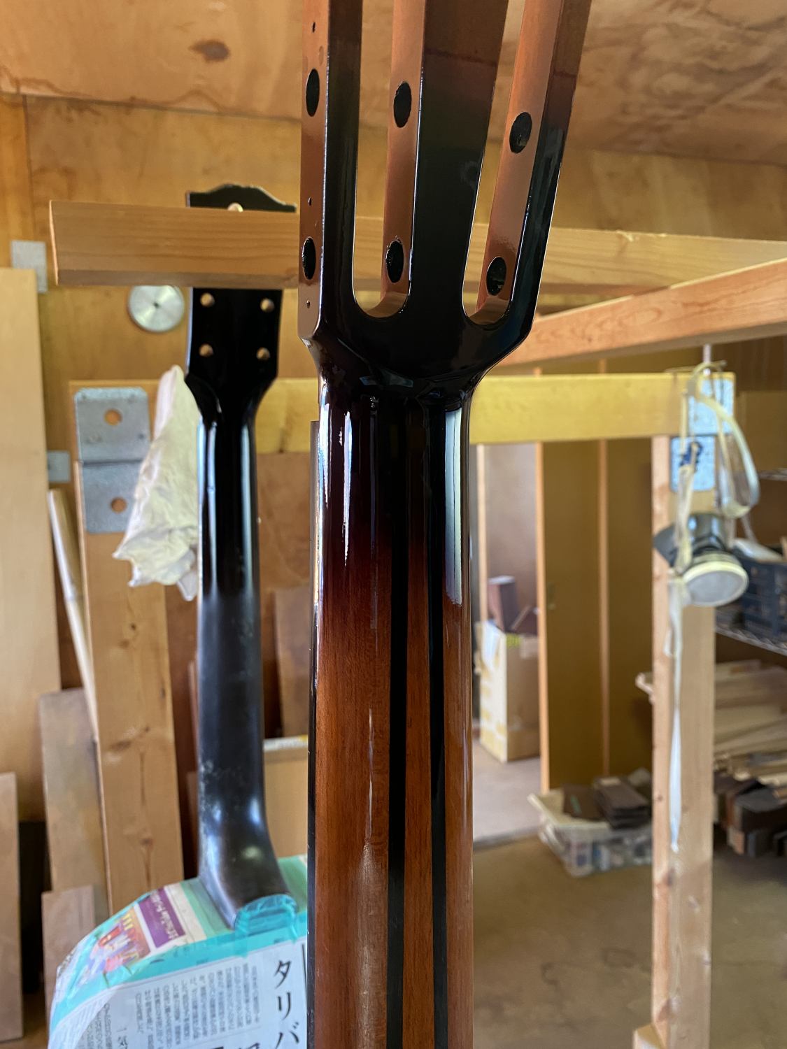 ネックの補強材を色で隠して、