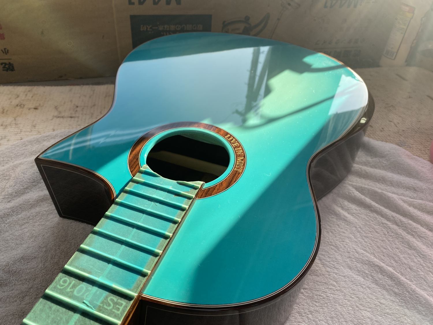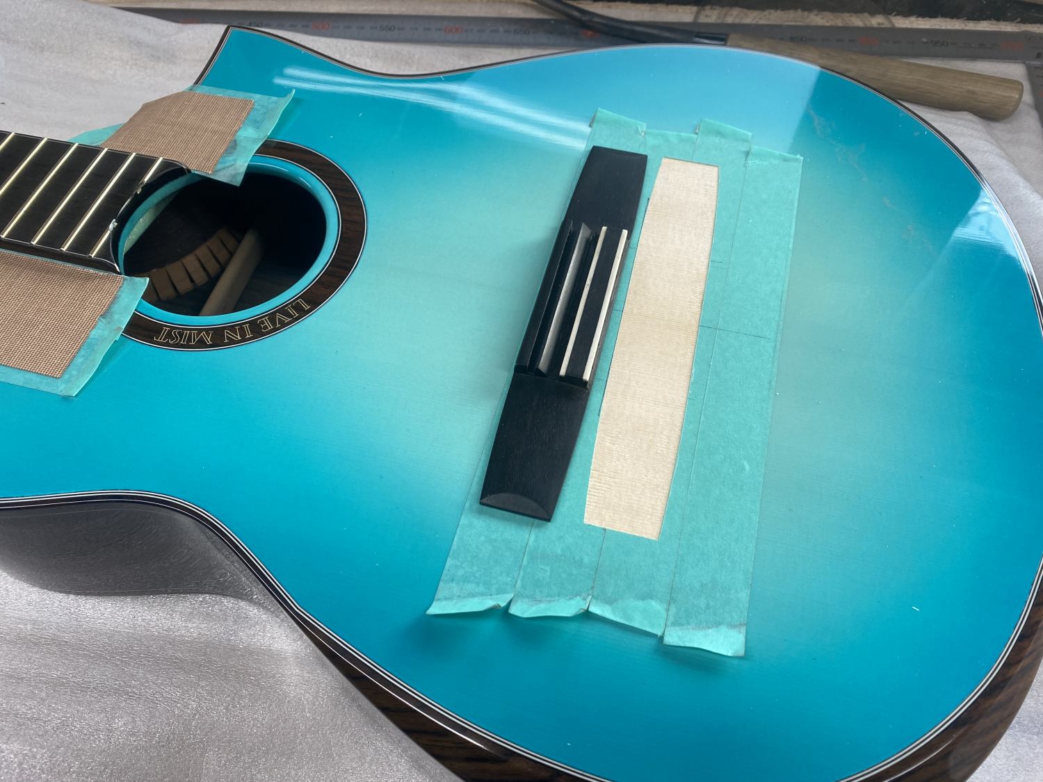 ラジオで言ってた。今日2月19日はチョコミントの日だそうだ。チョコミントカラーのギター、水研してバフがけ。