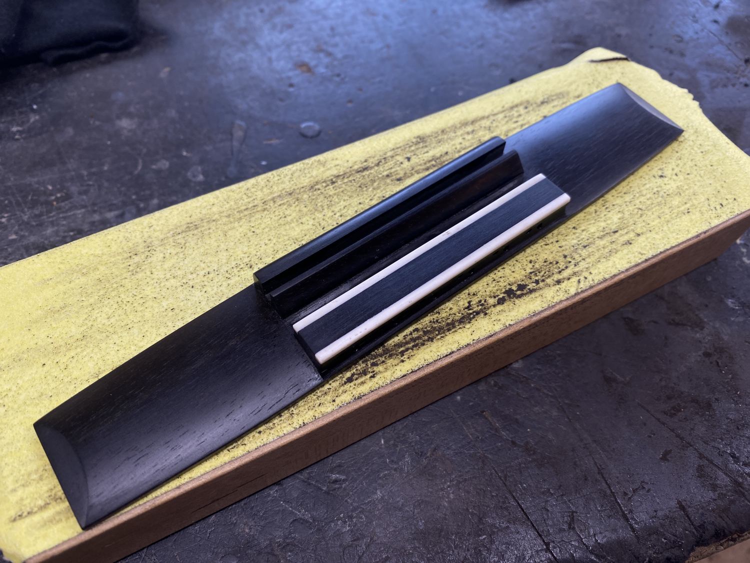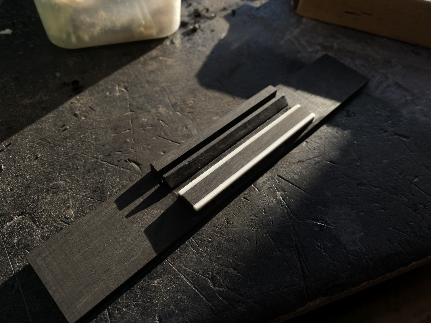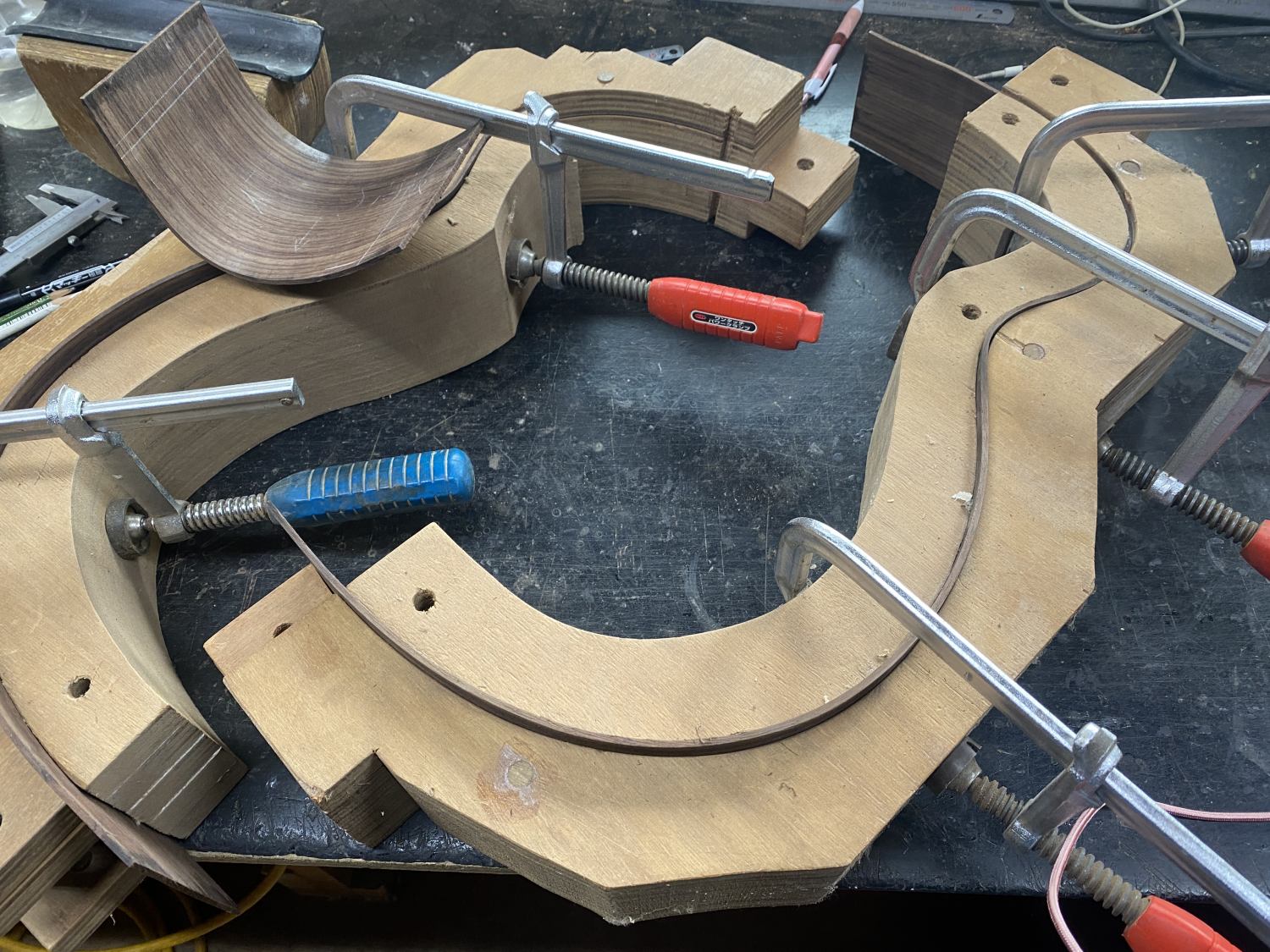 これまで進んだ作業はネックの準備と側曲げ一つ分。