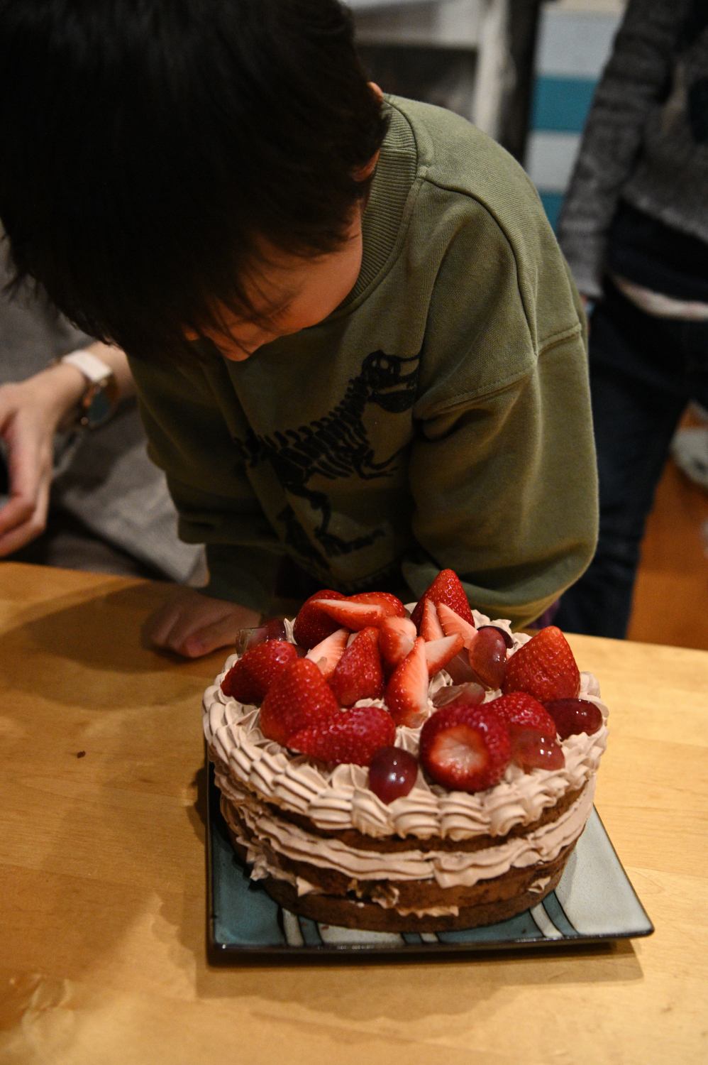 息子3歳の誕生日。妻が焼いたチョコケーキに子供らで飾り付け。どんといちごを乗せてね、と言われた息子はちょっと高い所から「ドンッ」と言いながらいちごを投げ落とした。確かに言われた通りにやっただけだ。