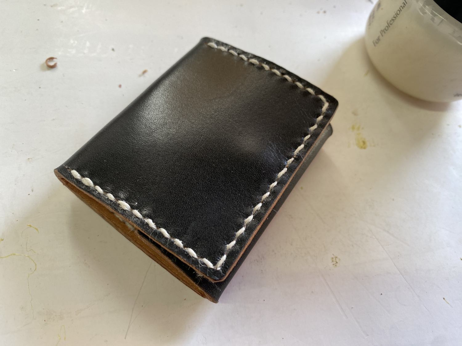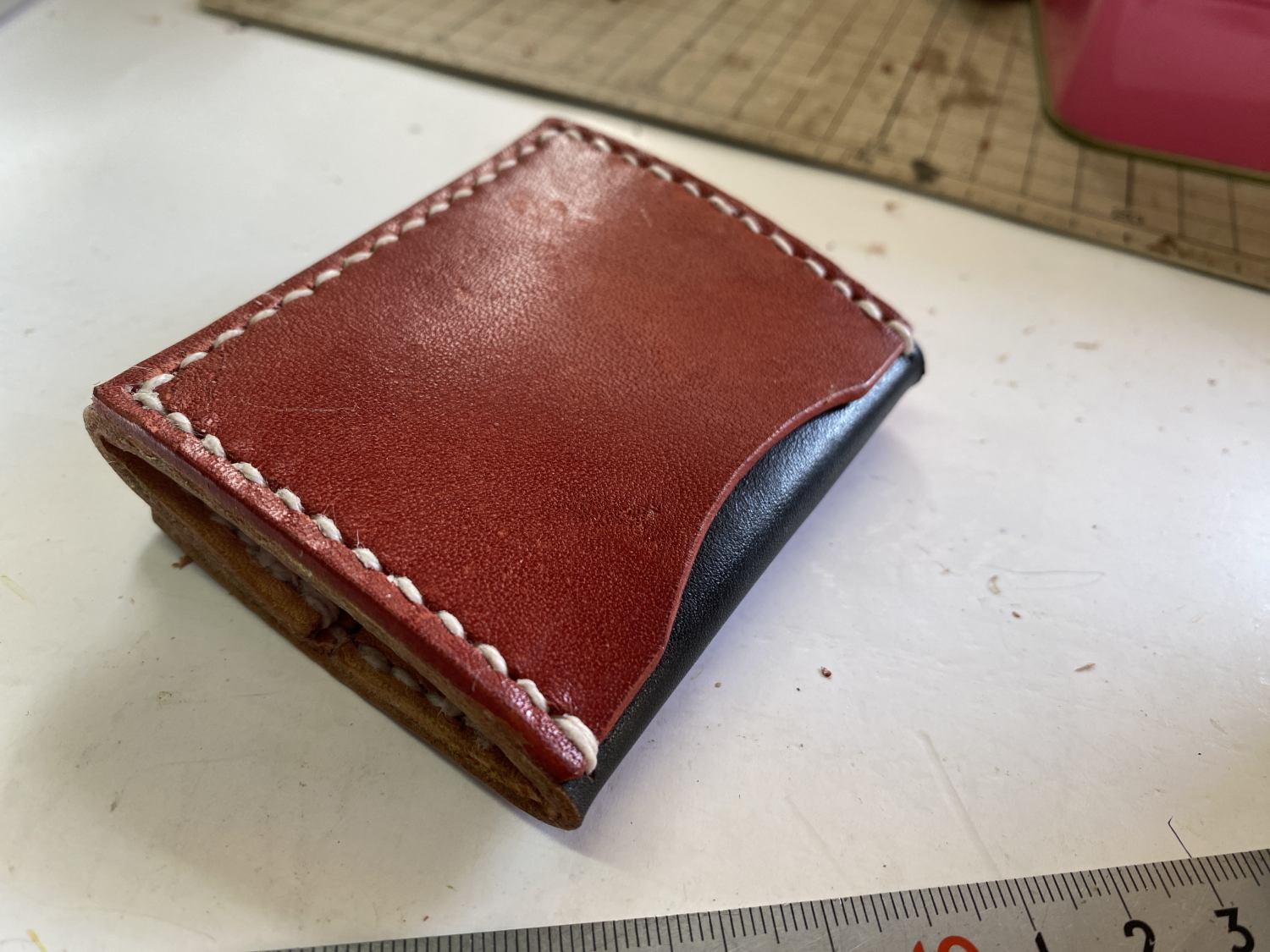 ついでに小銭入れも作った。キャッシュレス時代に時代錯誤で懐古趣味かもね。でも無いと不便。