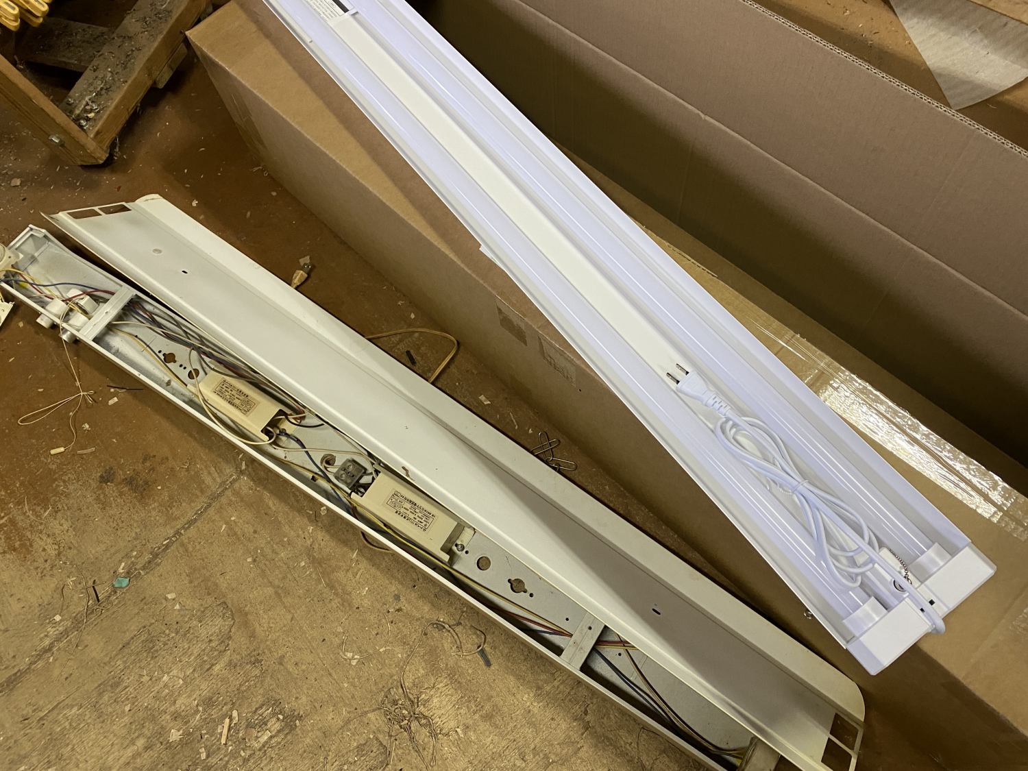 作業台上の照明がついに壊れた。しばらく前から3つの照明全部で2灯あるうち1灯点かない状態だったのでそのうちにと思っていた。新しいのはLED。軽いのね。そして明るい。
