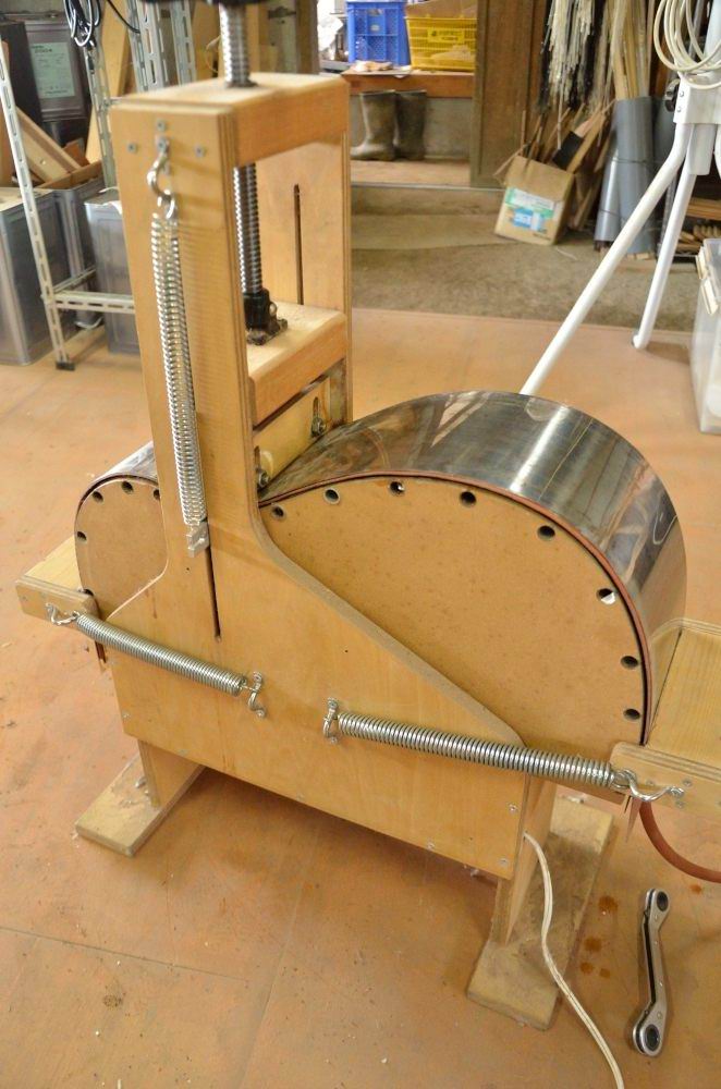 サイドの焼き曲げ。手曲げにこだわってきたが、ベンディングマシンにしてからずいぶん楽になった。 |